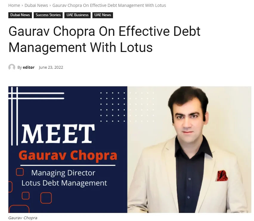 Gaurav Chopra On Effective Debt Management With Lotus – (UAE TIMES)